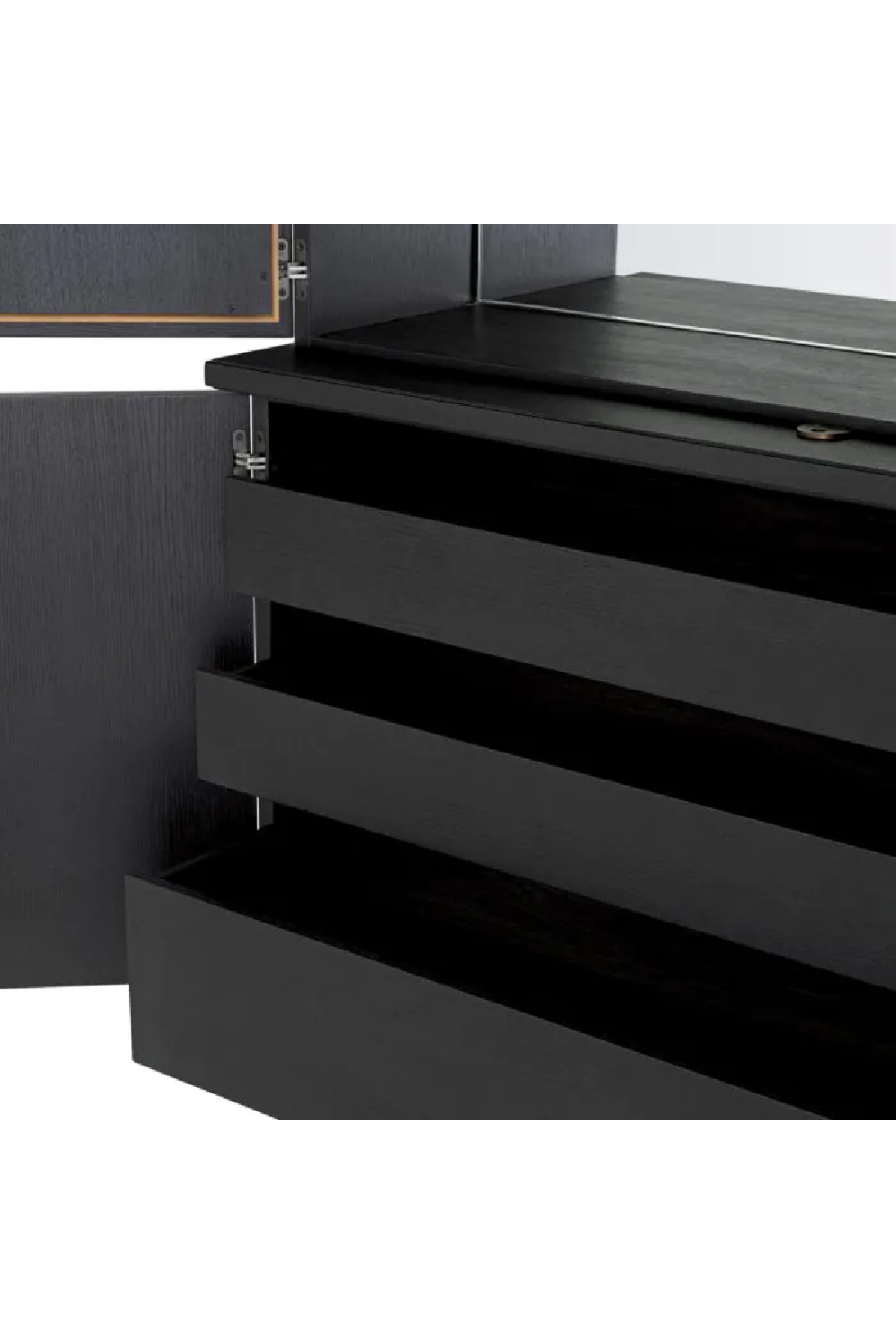 Avec sa finition noire raffinee et ses panneaux en miroir vieilli, ce cabinet degage un charme historique. Son design elegant allie harmonieusement le charme vintage et la sophistication moderne, en faisant une piece intemporelle pour tout interieur.
