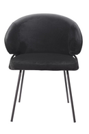 Accueillez vos invités avec style grâce au fauteuil de salle à manger Kinley. Avec un dossier courbé et une assise dans un revêtement en velours noir Roche et des pieds au fini bronze, ce fauteuil accrocheur dégage un flair moderne du milieu du siècle.