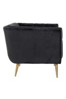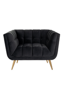 Le fauteuil Huxley est solidement construit à partir d'une armature en bois et d'un revêtement en velours anthracite. Ses profondes coutures en canal et ses pieds dorés brossés lui donnent d'autant plus de caractère. Un must-have pour un espace de vie cosy et élégant.
