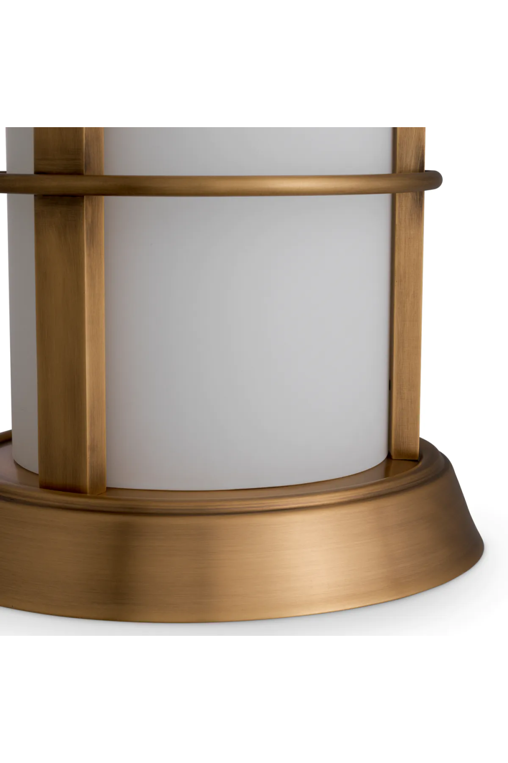 Découvrez une élégance raffinée avec la lampe de table d'extérieur Kyle L. Sa finition en laiton antique associée à un verre blanc immaculé crée un équilibre saisissant entre le charme vintage et la sophistication moderne. Conçue pour les espaces extérieurs couverts luxueux, cette lampe offre un style durable et une protection IP44, ce qui en fait l'incarnation de la durabilité gracieuse.