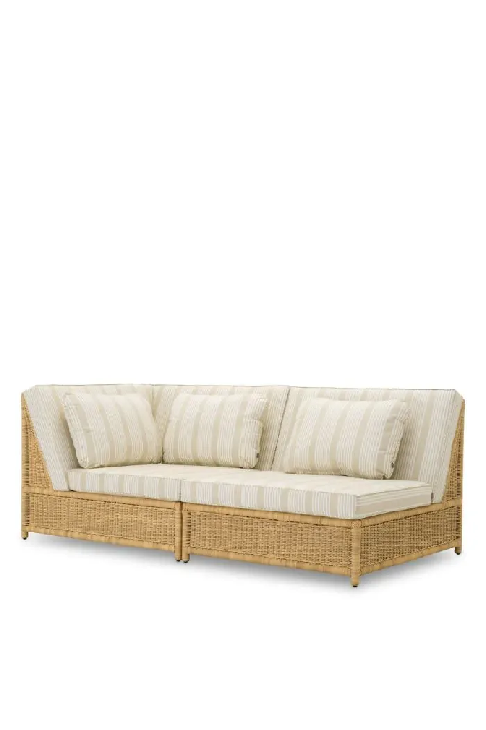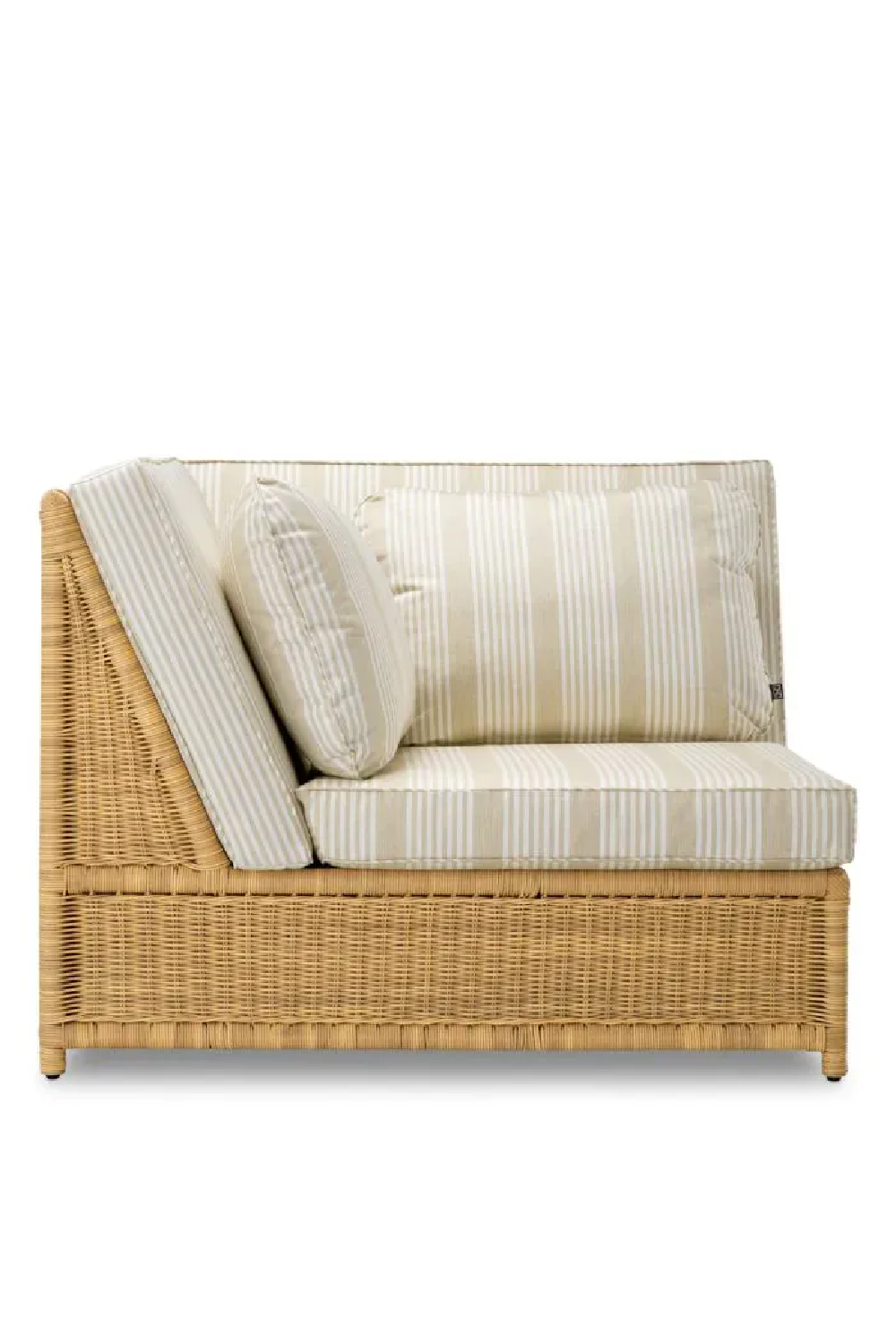 Ses coussins en tissu rayé beige Saville offrent une alliance harmonieuse de confort et de style, tandis que son design modulable permet une personnalisation aisée, affirmant un luxe versatile et raffiné.