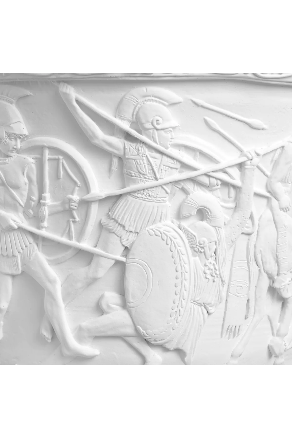 Le Vase Hydria est inspiré d’un calyx-cratère grec (vers 460–450 av. J.-C.), un type de bol en terre cuite utilisé pour mélanger l’eau et le vin, attribué au Peintre de l’Hydrie de Berlin. Le vase original représente une Amazonomachie, une bataille légendaire entre les Grecs et les Amazones, une race mythologique de guerrières. Ce thème, sujet populaire dans la céramique grecque, traduit le drame et la fureur du combat.