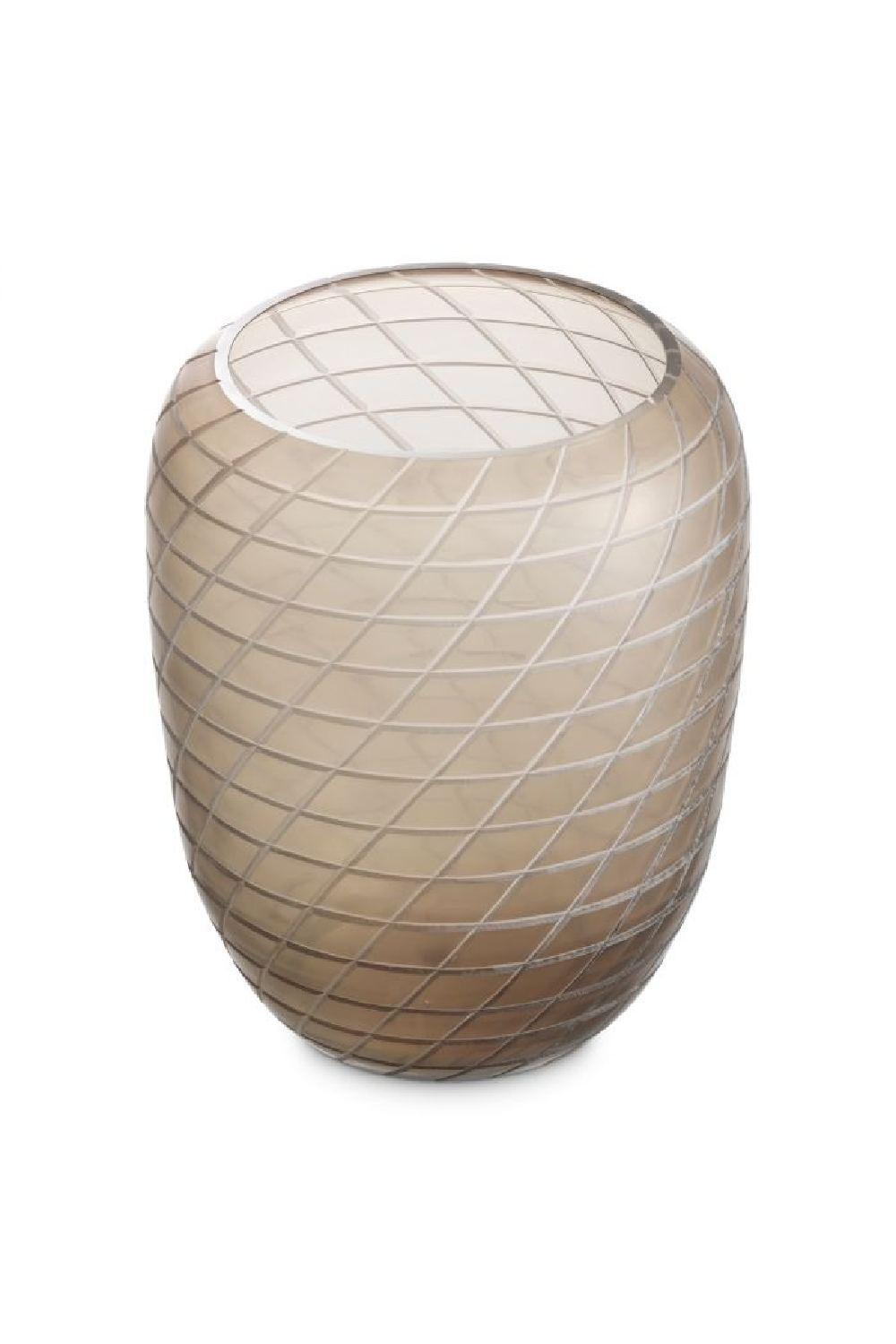 Le Vase Tarano presente un verre recycle souffle a la bouche de couleur sable, orne de motifs tailles a la main.