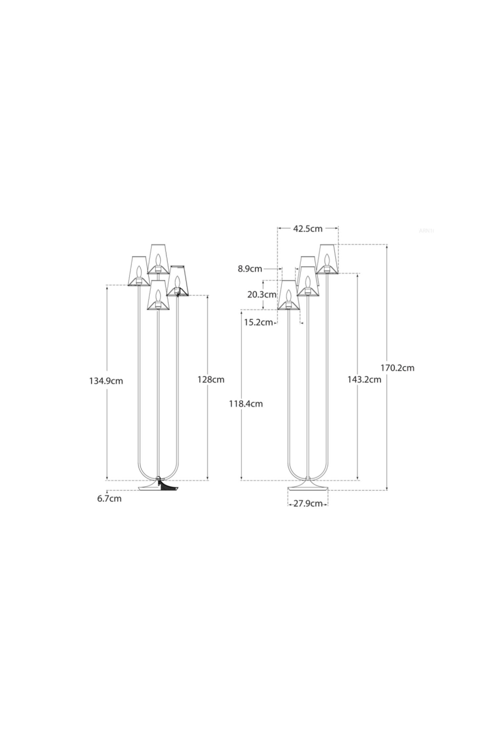 Four linen shades in metallic shades rest on a streamlined foot in a gold finish. Designed by Aerin, this graceful floor lamp will be a stylish accent in any room.