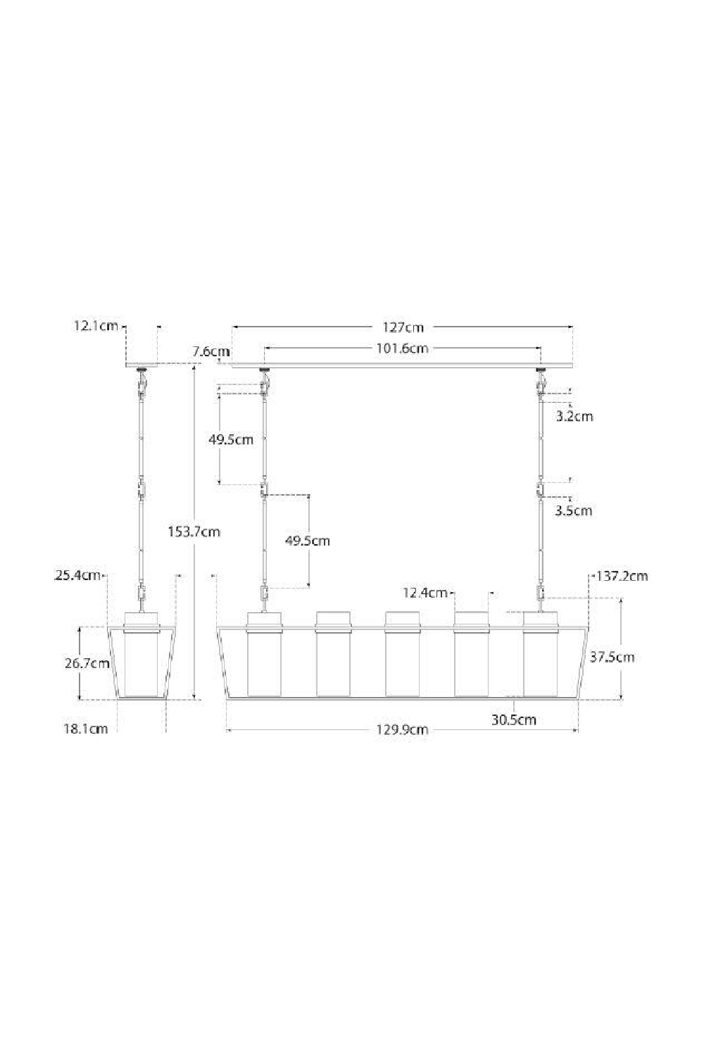 Bousculez les attentes avec la silhouette inversée de la suspension linéaire Presidio. Remarquable par sa simplicité et son élégance, des abat-jour de type “hurricane” entourent cinq lumières, tandis qu’un cadre trapézoïdal ouvert en nickel poli crée un effet dramatique et une définition marquée au-dessus d’un îlot ou d’une table à manger.