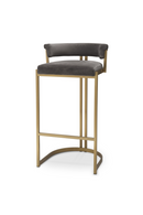 Bring a touch of style to your casual or formal living or dining room with the Eichholtz Dante luxury bar stool. Its brushed brass finish frame with footrest adds glamor and sophistication to your modern decor, while its Savona gray velvet seat offers a comfortable seating experience.