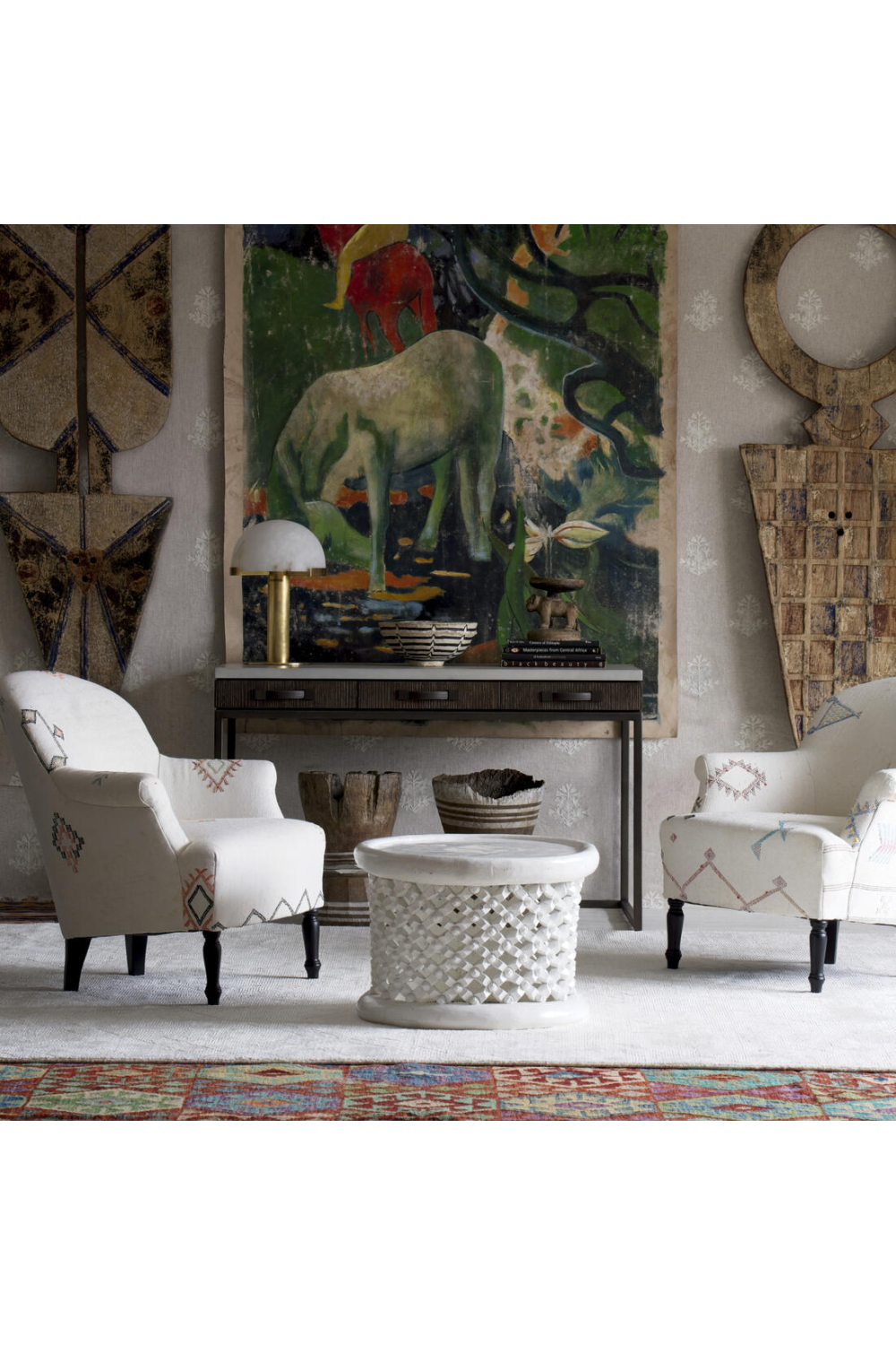 Bring the warmth and joy of the medina into your home with the beautiful and colorful Victoria in Moroccan. Available in orange, pink, white, green, yellow and blue, the fabric of these armchairs is woven by hand by artisans in Marrakech. In natural and organic cactus silk: once the fibers are harvested from the aloe vera plant, they are spun and then woven to make silk thread. The yarn is then dyed in different beautiful colors and then woven by hand to make each piece totally unique.