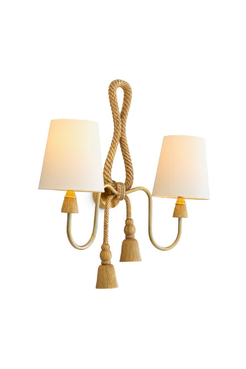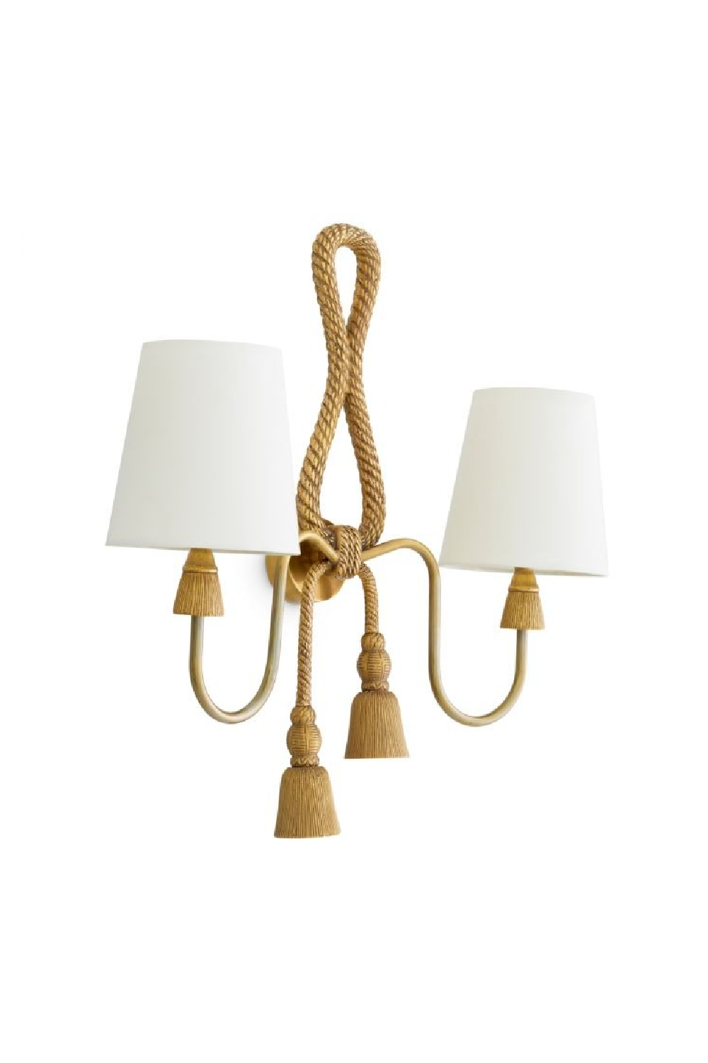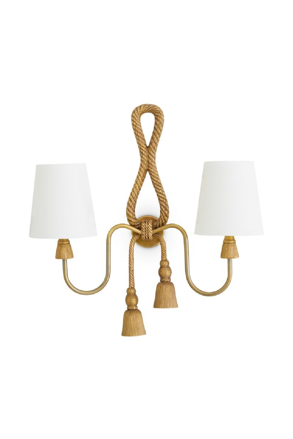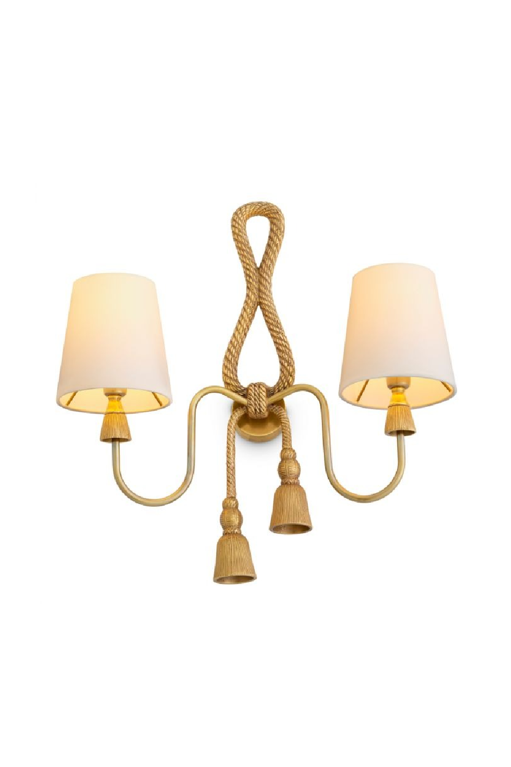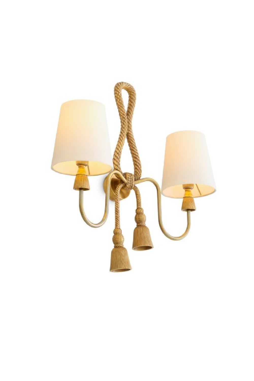 L applique murale Tropez presente une finition en laiton vintage avec des details finement moules a la main et est accompagnee d abat-jour assortis.