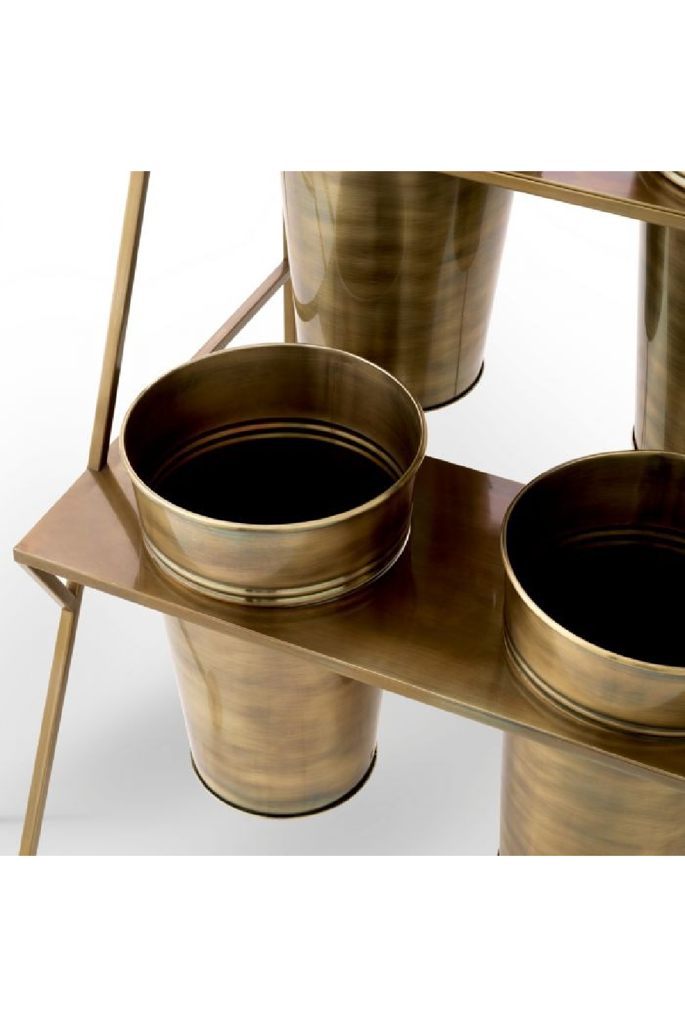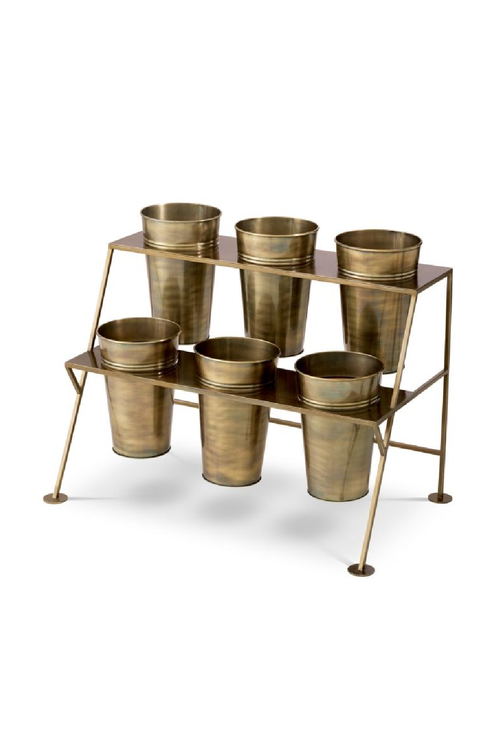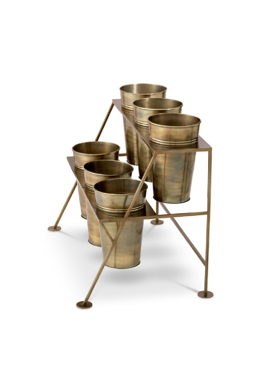 Decouvrez une etagere d exposition raffinee en finition laiton vintage, dotee de six seaux concus pour presenter les compositions de fausses fleurs Eichholtz avec une sophistication naturelle.