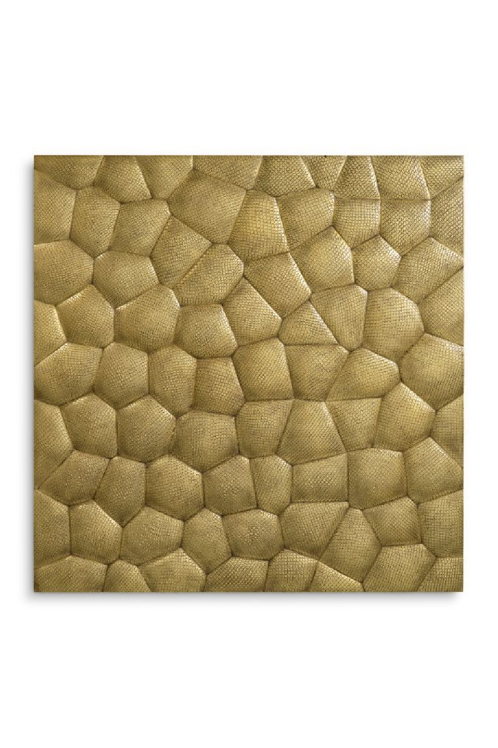 Devoilez une declaration audacieuse avec l objet mural Maximus, dote d une finition en laiton vintage et d une texture 3D peau de serpent intricatee.
